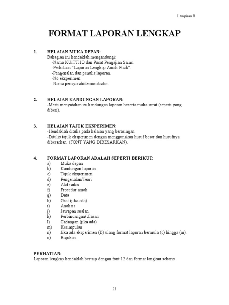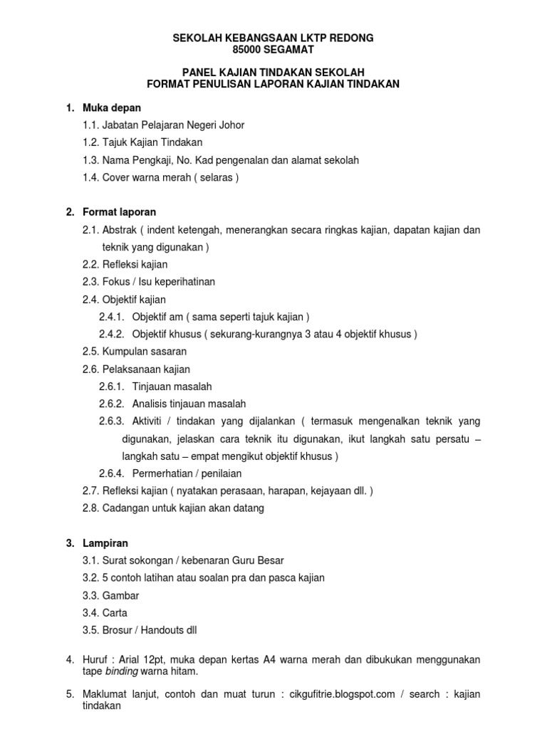 Pdf 1 Contoh Format Penulisan Laporan Li Terkini Pkbelajar 1 2 Academia Edu